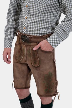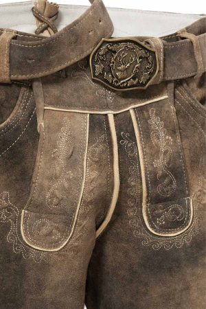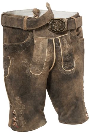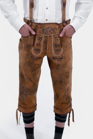 Bavarian Bundhosen have been a symbol of traditional German clothing for centuries. These knee-length authentic bundhosen are not only comfortable but also a statement of cultural pride. The Arnold Bundhosen with straps is a perfect example of the Bavarian style with its intricate embroidery, rich leather, and authentic horn buttons.