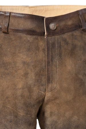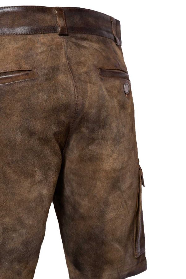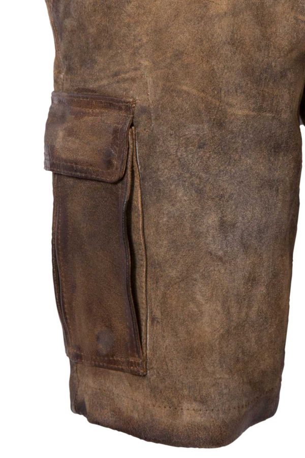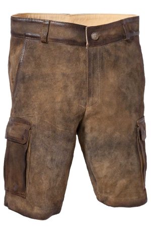 Meet our Bayerische Alpen Cargo mens short lederhosen – a perfect blend of comfort and style with a subtle “worker look.” These shorts are crafted from soft suede Goatskin, boasting a trendy dark brown, worn-in appearance without any fancy embroidery.