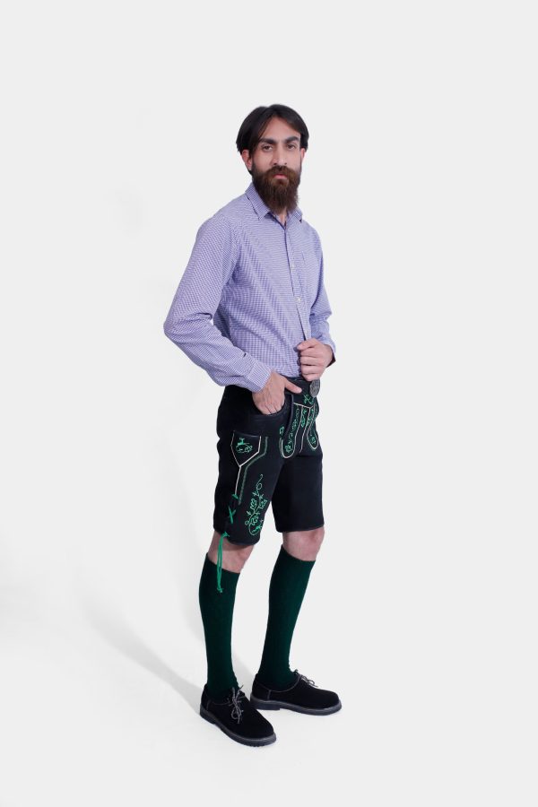 Stand Out Böll Lederhosen: Stylish Black Lederhosen with Green Embroidery!