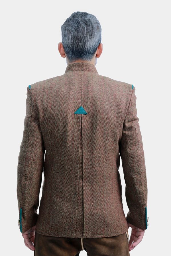 Discover timeless Bavarian elegance with the Caselli Anthrazit Trachten Jacket — a sophisticated blend of tradition and craftsmanship. Made from a high-quality wool blend fabric in a charcoal brown color, this men’s jacket offers warmth, comfort, and heritage appeal. The refined teal green trim, horn-style buttons, and stand-up collar evoke Alpine authenticity, while the tailored fit and structured shoulders create a sharp, modern silhouette.