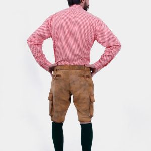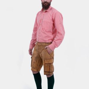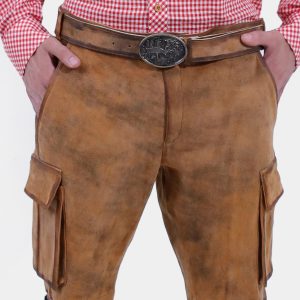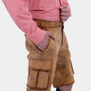 Experience the perfect blend of tradition and modern style with the Cleopatra Cargo Lederhosen. These Men’s German shorts lederhosen, in the rich “Forest Caramel” color, are crafted from high-quality goatskin leather, offering both durability and comfort.