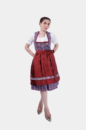 Step into timeless elegance with the “Dirndl Red Jentsch” a dress designed to impress at any event. This traditional dirndl outfit blends traditional craftsmanship with a modern touch, making it perfect for everyday wear, weddings, festivals, and more. The bodice, made with care, features a vibrant red color and a classic plaid pattern that adds depth and charm. Silver accents and delicate trim frame the neckline, creating a beautiful focal point.