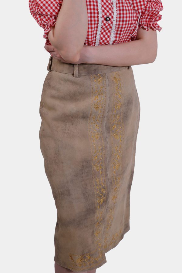 Edelweiss Lederhosen Skirt: Timeless Elegance in Sunset Dune Goat Suede