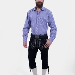 Paired with the bundhosen is a classic checkered Bavarian shirt. This shirt not only adds a splash of color but also offers comfort and breathability, making it perfect for festive occasions or casual outings.