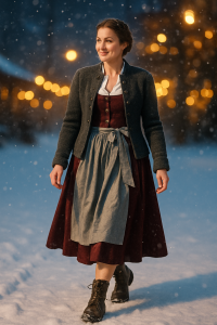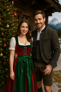 Whether you’re aiming for a romantic dirndl Christmas vibe or a cozy and rustic Christmas lederhosen appearance, the magic lies in combining traditional Bavarian details with festive creativity. From the richness of velvet to the shimmer of metallic accents, let your outfit mirror the season’s joy.
