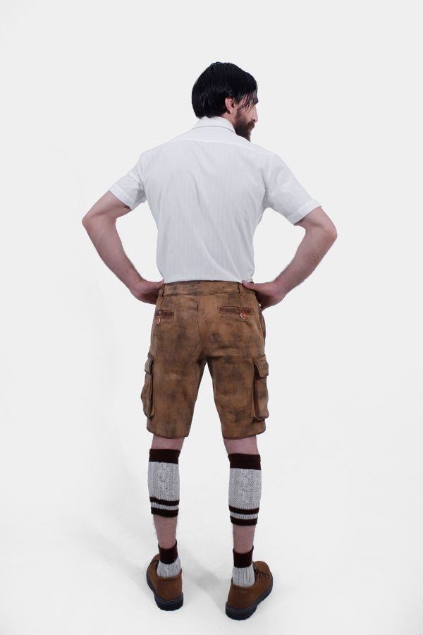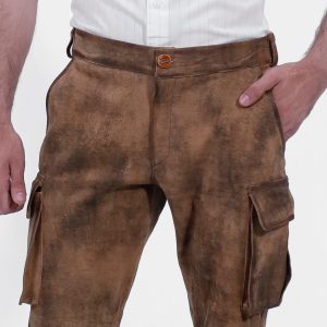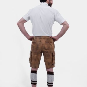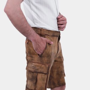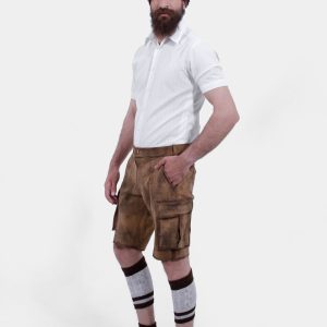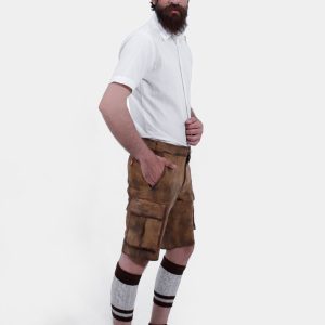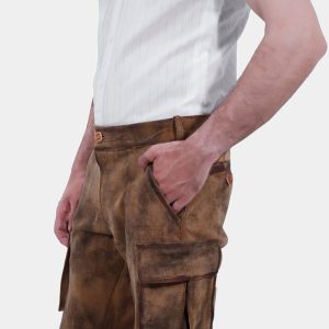 Step into a world where tradition meets functionality with our Kant Cargo Lederhosen. These German lederhosen shorts, crafted from premium goatskin leather in a stunning brown Walnut shade, are designed for both durability and style. Featuring four front pockets and two back pockets, these modern cargo lederhosen are as practical as they are stylish. Whether you’re heading to Oktoberfest or any other festive event, the Kant Cargo Lederhosen will make you stand out.