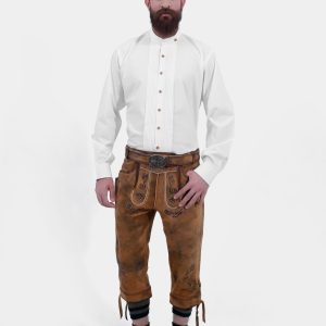 Personalize your Röntgen Bundhosen Outfit with a range of customization options. Select different embroidery designs, leather colors, and shirt styles to create an outfit that’s uniquely yours.
