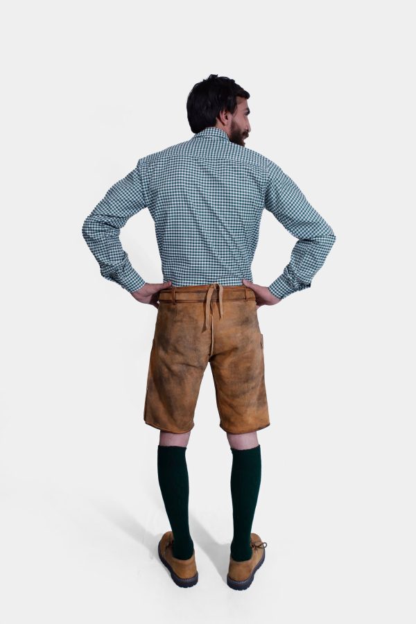 Complete your Bavarian look with traditional brown suede shoes. Designed for both style and comfort, these shoes feature a sturdy sole and a classic design, perfect for complementing the Lederhosen shorts.