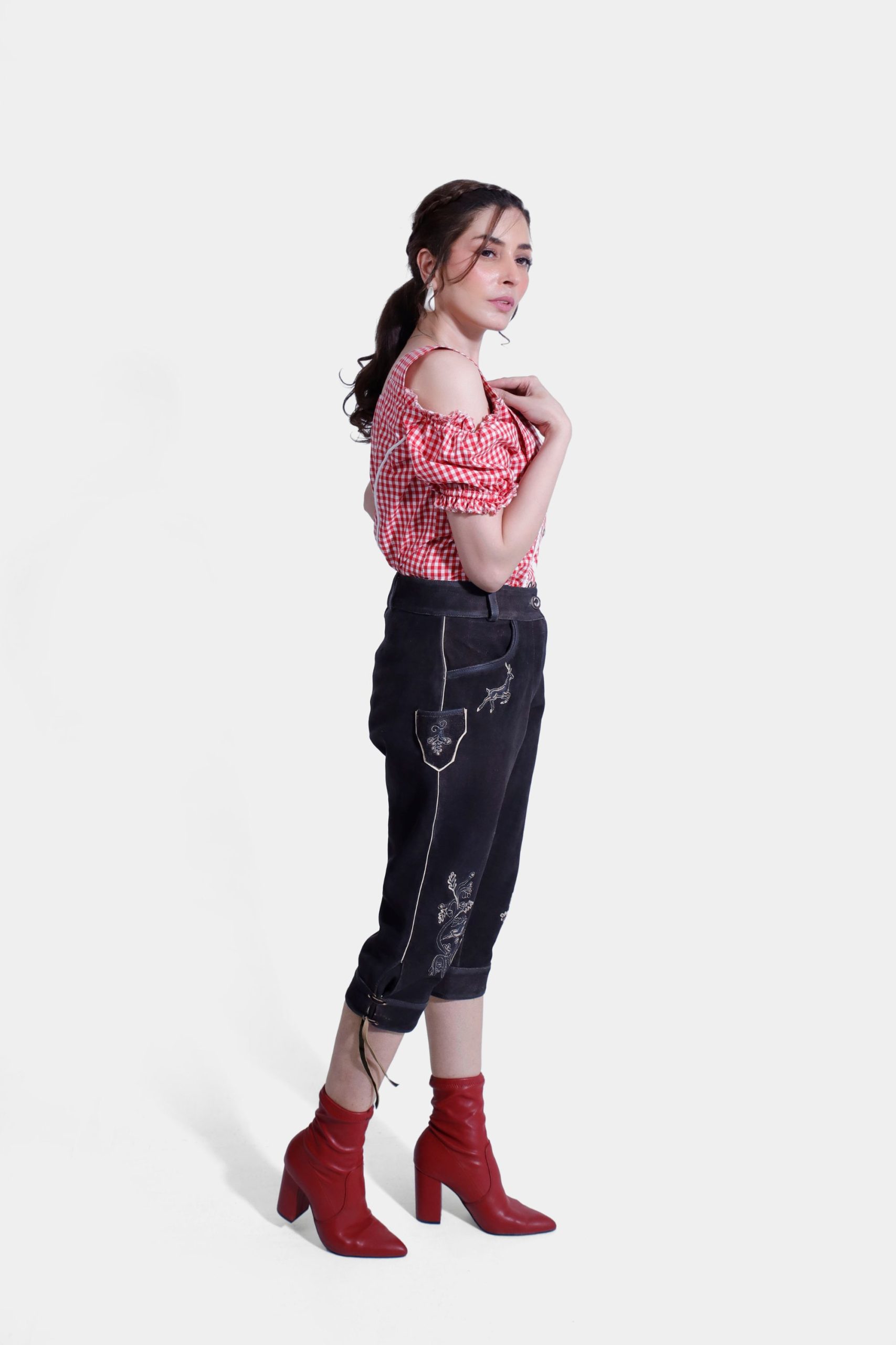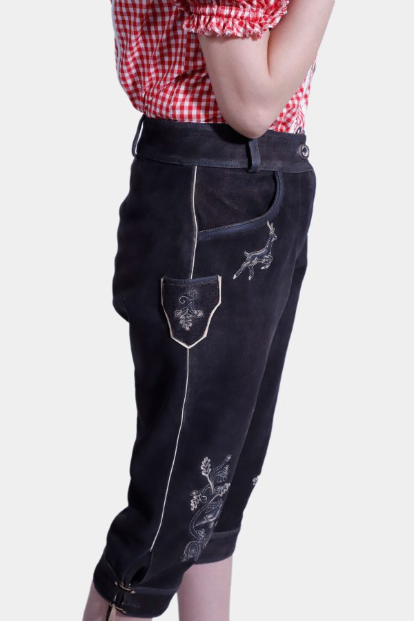 Ebony Stag Black lederhosen women traditional Elegance in Premium Goatskin Leather