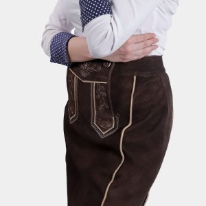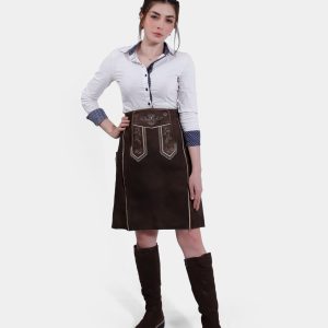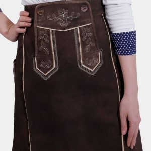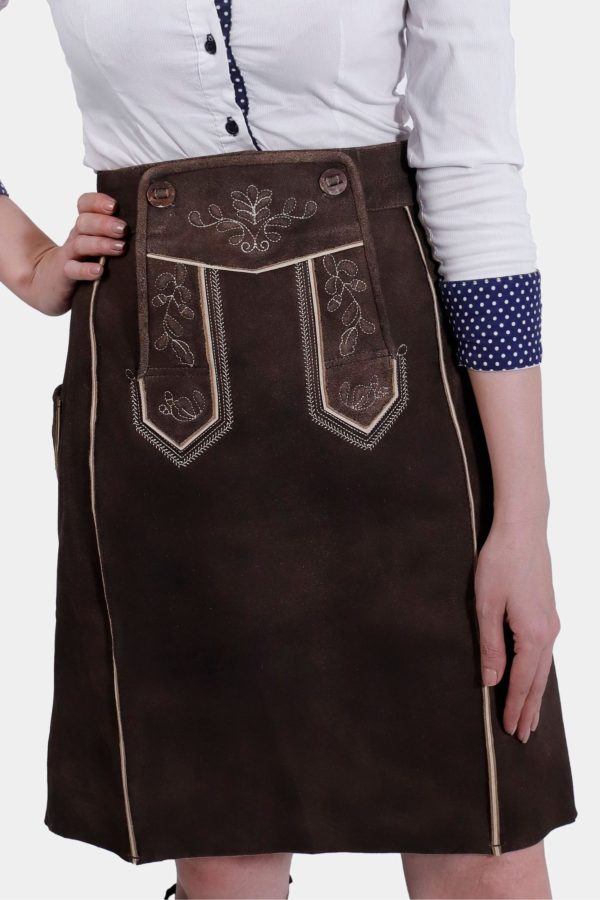 Elegant Lillian Lederhosen Skirt: Tyrolean Chocolate Suede with Bavarian Embroidery