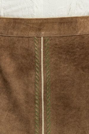 Introducing the exquisite Lily Lederhosen Skirts, the epitome of style and sophistication. Our latest addition, the “LILY” leather skirt in antique earth, is an absolute must-have for any fashion enthusiast. With its fitted silhouette that ends above the knee, this real leather skirt exudes a chic allure that is both elegant and modern.