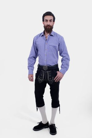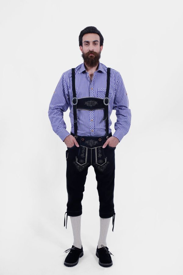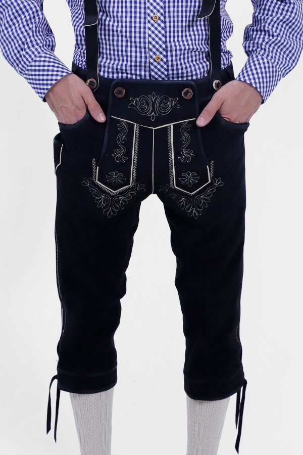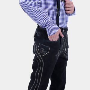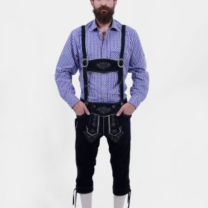 But the Lederhosen knee-length Bundhosen Martin black with straps isn’t just about style – it’s also designed with functionality in mind. The lacing on the side of the legs can be adjusted to regulate the width, ensuring a comfortable fit that’s both stylish and practical.