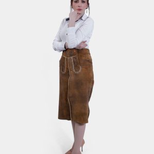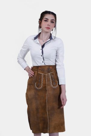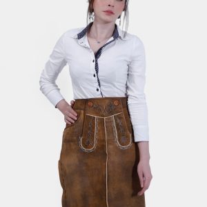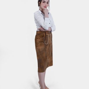 The Nena Lederhosen Skirt showcases Bayerische’s dedication to exquisite craftsmanship. Made from genuine goatskin, it exudes durability and high quality. The waistband and sides of the skirt feature intricate traditional embroidery, adding a touch of authenticity and charm. The attention to detail is evident in the delicate stitching, showcasing the brand’s commitment to delivering exceptional products.