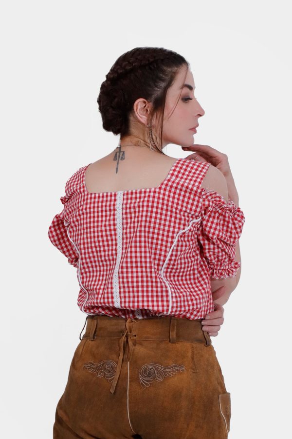Introducing the Bavarian Traditional Blouse Nena for women – an exquisite addition to the world of Trachten blouses. This lederhosen t shirt women’s is meticulously designed to showcase a classic checkered pattern combined with a flattering cut that enhances the feminine silhouette. Perfect for folk festivals, Oktoberfest, or any casual outing, the Nena traditional blouse is a versatile piece that adds charm and elegance to any wardrobe.