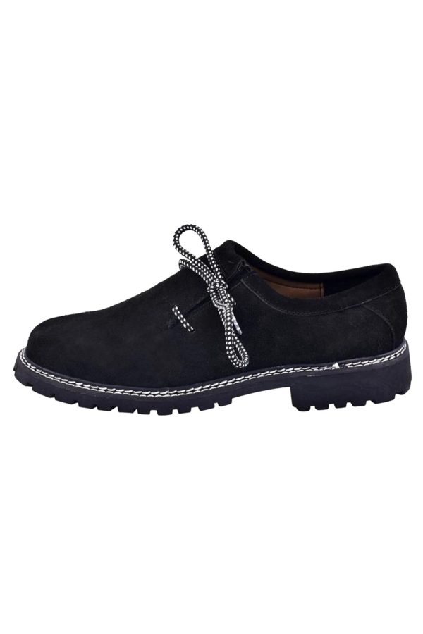 Elevate your style effortlessly! The Niclas Lederhosen shoes in sleek black offer a touch of elegance whether you’re pairing them with traditional Bavarian Lederhosen or your favorite casual outfit. Their sturdy design, accented by distinctive patterned laces, ensures they stand out in any setting.