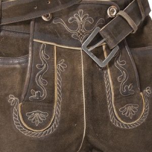 Introducing the Schorschi moor german Bundhosen knee-Length, a beautiful piece of clothing that’s perfect for any occasion. Crafted from fine suede in a glossy moor finish, this knee-length lederhosen features typical embroidery in beige on the bib, along the leg, and on the knees, making it a great choice for the klassche Trachten outfit.