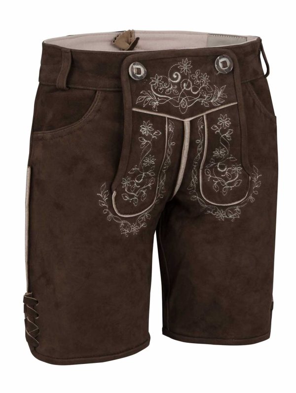 Looking for a stylish and comfortable alternative to the traditional Dirndl dress? Look no further than our Bavarian women Trachten Diva Lederhosen in goat suede! This beautiful chocolate brown leather pant is made of 100% fine and very supple goat suede, ensuring a soft and comfortable fit that you’ll love wearing all day long.