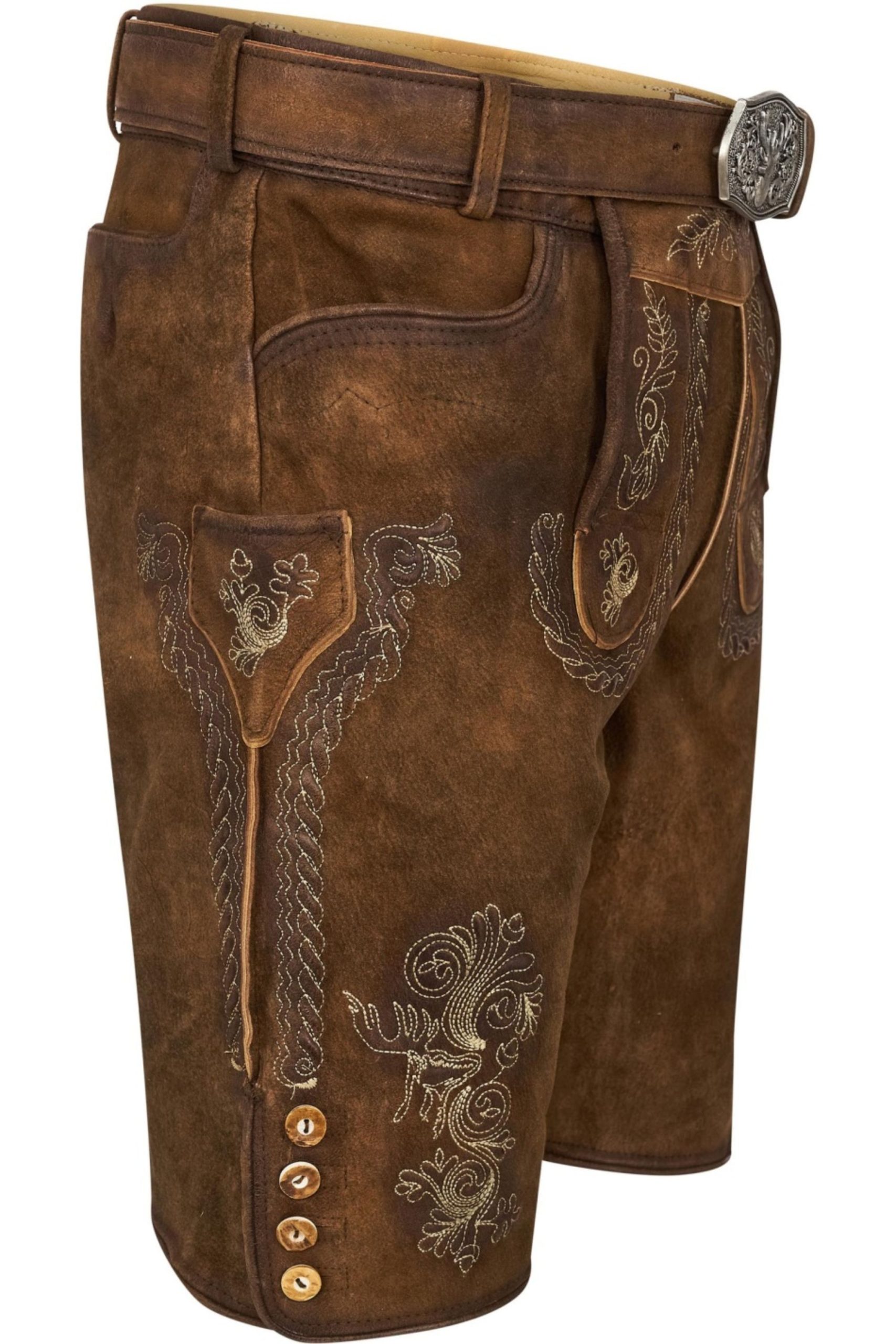 To complete the traditional appearance, this Lederhosen consists of a matching leather belt in rich brown, providing an embossed buckle in mild gold. This not simplest provides exquisite grip and aid but also provides a hint of sophistication on your basic apparel.